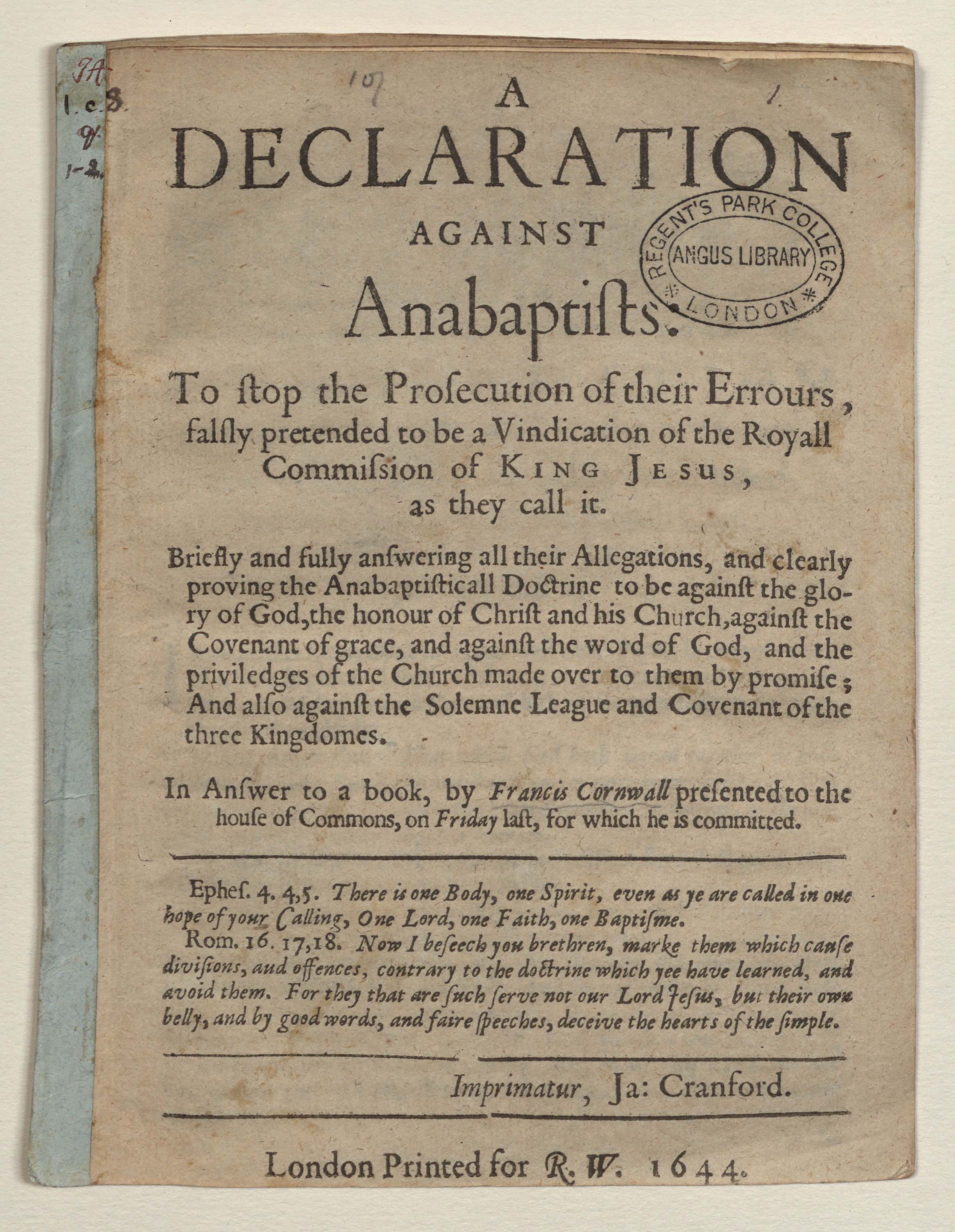 London : Printed for R.W |