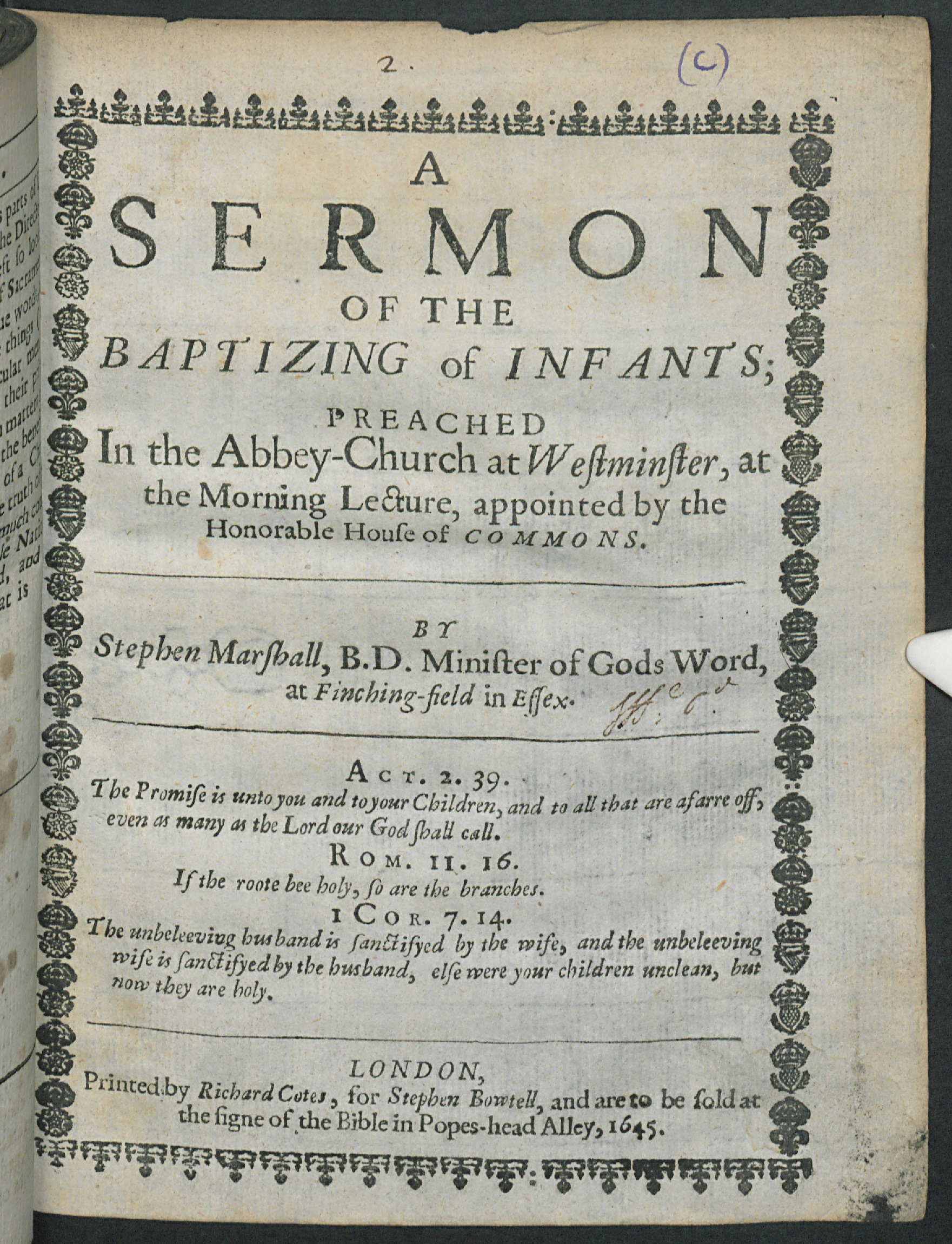 London : printed by Richard Cotes, for Stephen Bowtell, and are to be sold at the signe of the Bible in Popes-head Alley |