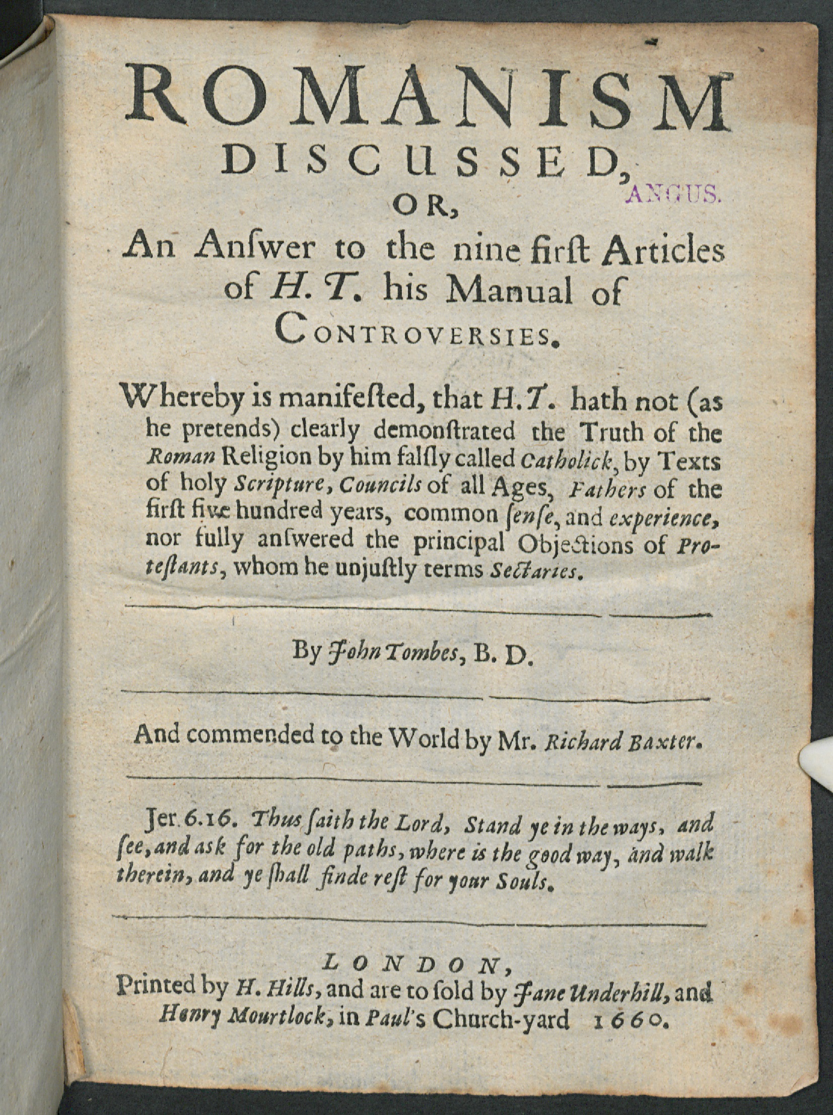 London : printed by Henry Hills, and are to be sold by Jane Underhill, and Henry Mourtlock in Paul's Church-yard, 1660 |