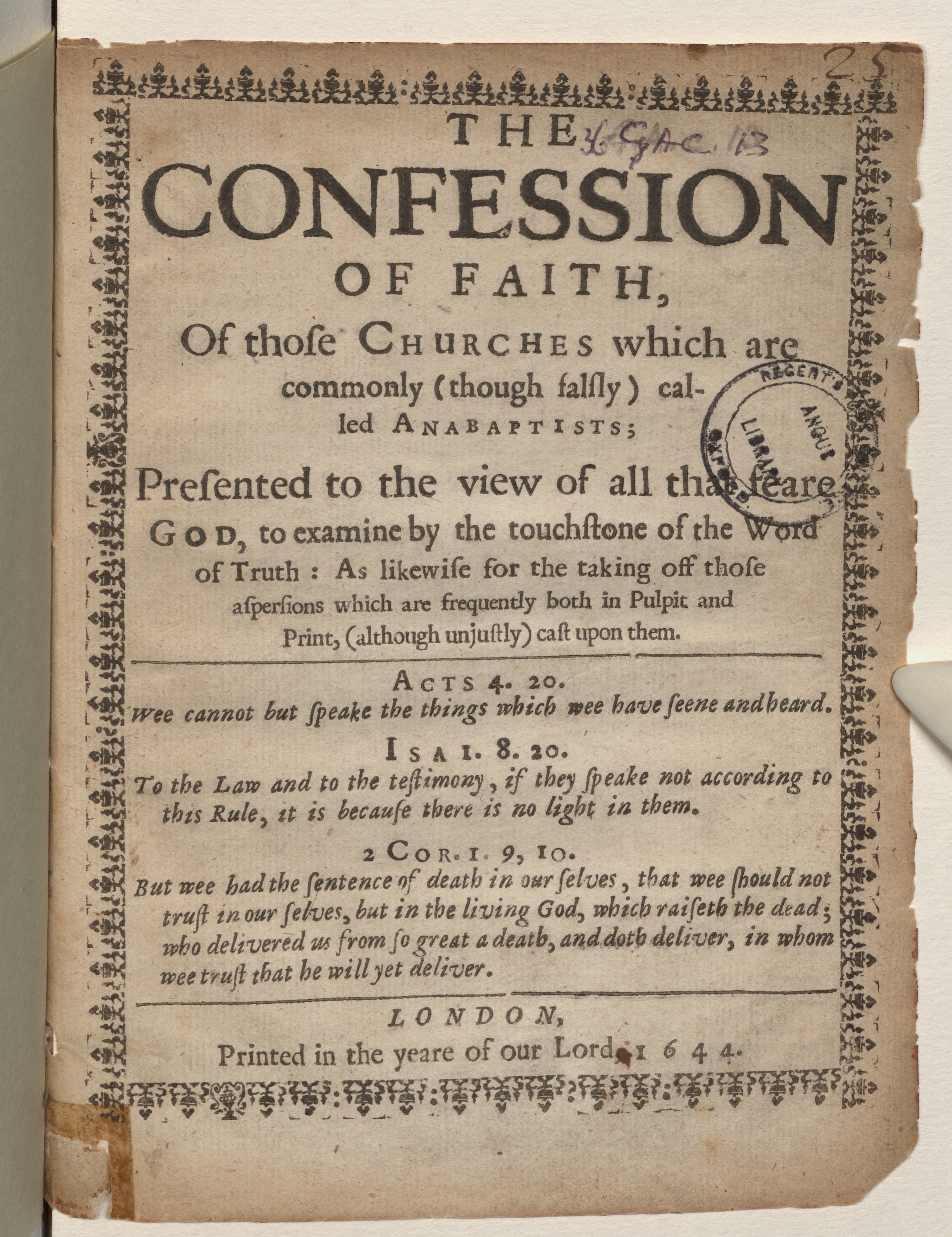 London : Printed in the yeare of our lord |