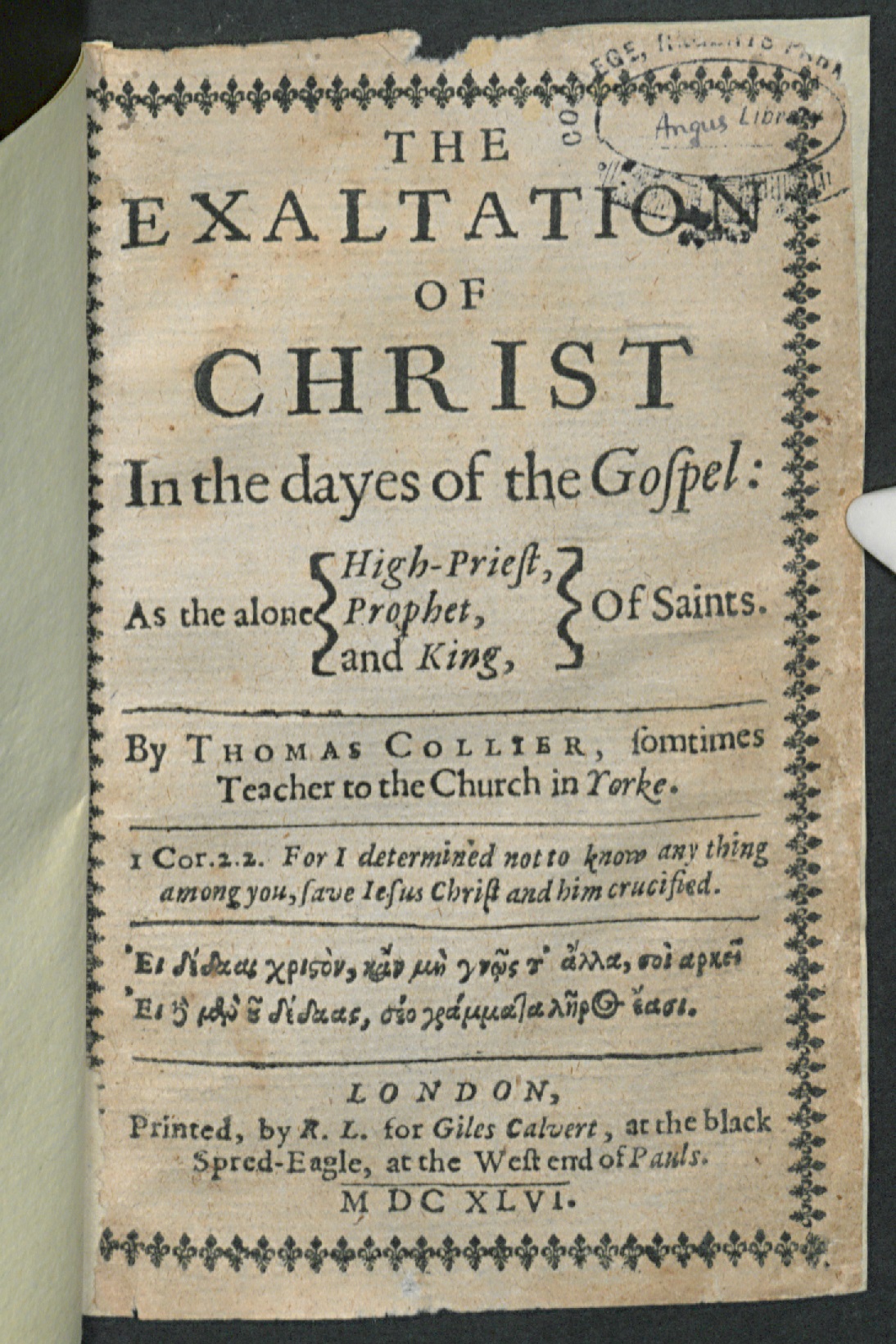 London, : Printed, by R.L. for Giles Calvert, at the black Spred-Eagle, at the West end of Pauls