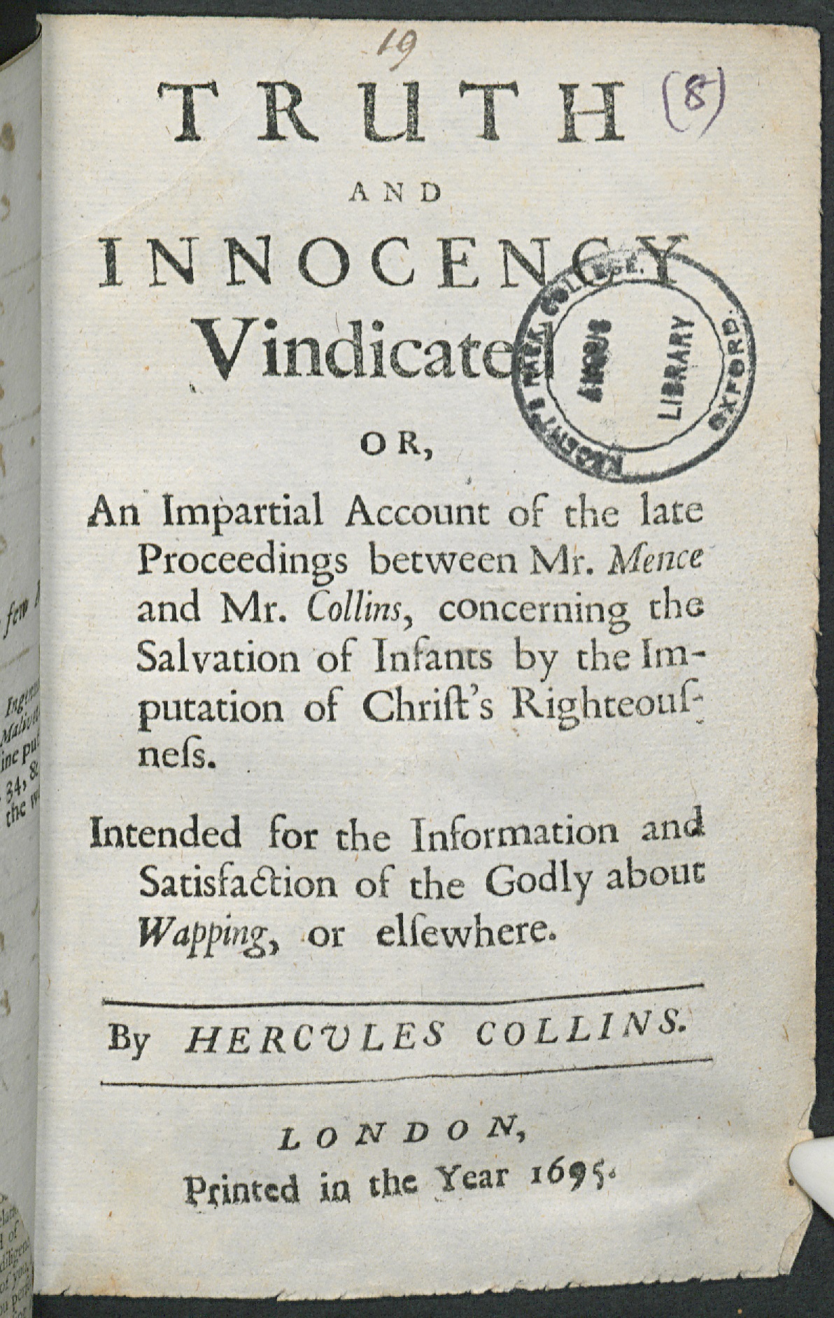 satisfaction of the godly about Wapping, or elsewhere. / By Hercules Colllins.. : London, : [publisher not identified], Printed in the year